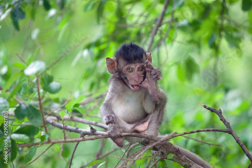 animal, wildlife, macaque, wild, nature, mammal, wood, baby, forest, jungle, sweet, sitting, fur, tropical, asia, green, young, face, zoo, small, mother, baboon, branch, monkey, mammal, forest