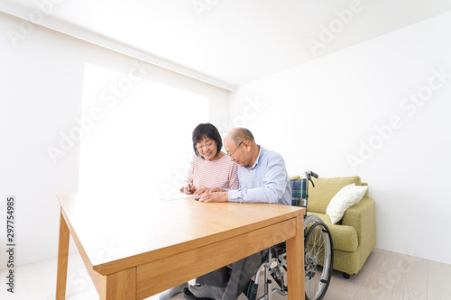 contract, couple, retire, wheelchair, keep, rental, nursing home, nursing home, lawyer, life assurance, insurance, insurance, property, hospital, residence, inheritance, money, nest egg, loan, risk, consultation, health insurance, aged, grandfather, babushka, aged, silver, grandchild, children, children, japanese, chinese, korean, white background, copy space