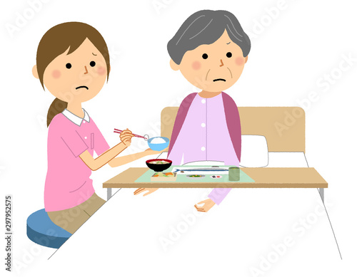 people, japanese, illustration, aged, aged, silver, aged, elder, care, assistance, meal, helper, woman, welfare, bed, nurse, staff, rehabilitation, day care, handicap, nursing home, rehab, facility, care, care, health, marode, babushka, nanny, grandmother, mother, dementia, indulgence, resent, refuse