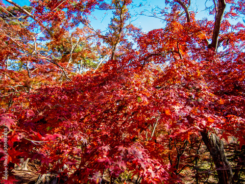 japan, izu, fall, red, tourist attraction, tour tourism, travel, leaf, plant, nature, showplace, landscape, shizuoka, maple, maple, wood, vegetation, open air, outdoors, forest, grove, park, view, lovely, vivid, healing, emotion, relax, stroll, walk, yellow, blue skies, gradation, clean, shiny, light, green