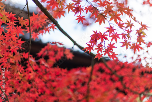 acer, red, fall, natural, japan, tradition, vibrant, roof, nature, leaf, branch, sky, season, wood, flowering, lovely, landscape, bokeh, soft
