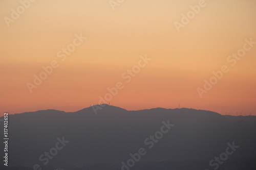 mountain, mountain ridge, geography, nature, sky, weather, sunny, cloud, evening, dusk, sunset, sunset, shadow, orange, vermilion, black, gradation, landscape, view, background, wallpaper
