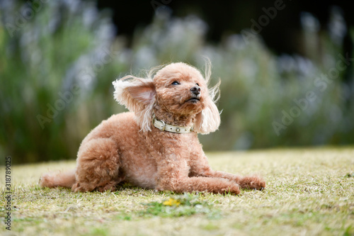poodle, nature, verdure, spring, summer, fall, winter, flower, flower garden, park, dog, pet, apricot, brown, white, pretty, pink, flower, forest, forest, dog