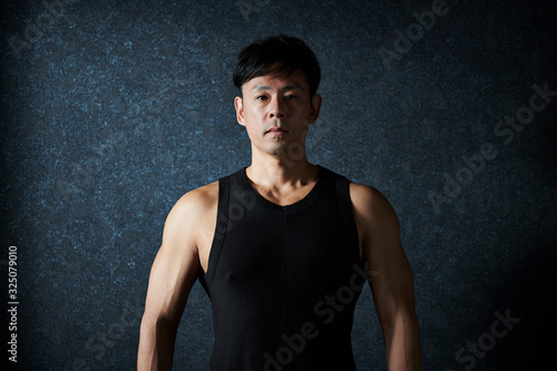 training, man, barbell, gym, exercise, health, muscle, train, working out, concentration, waist up, weight loss, active, exercise, lifestyle, sports club, fitness, indoor, facility, people, japanese, asian, 30s, young, solemn, breast, arm, diet, body, pursuit, aim, portrait, bodybuilder, macho, healthy, singlet