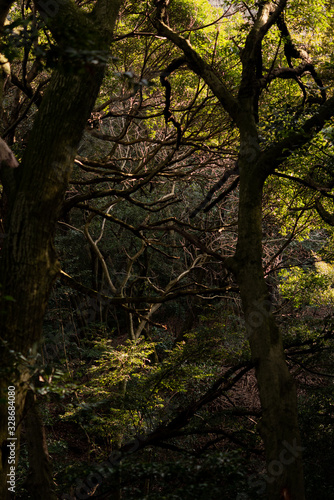 forest, wood, nature, green, landscape, leaf, fall, foliage, natural, outdoors, grass, background, material, copy space, dark, sunlight, branch, plant, open air, forest, green, grove, plural