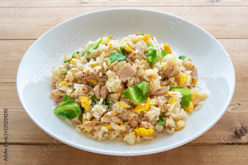 fried rice, chinese, chinese, dish, rice, food, tuna, ham, egg, stir fry, dinner, lunch, dinner, dinner, snack, food, meal, handcraft, fried rice, hood, rice, delicious, delicious, vegetable, cabbage, table, table, woody, indoor