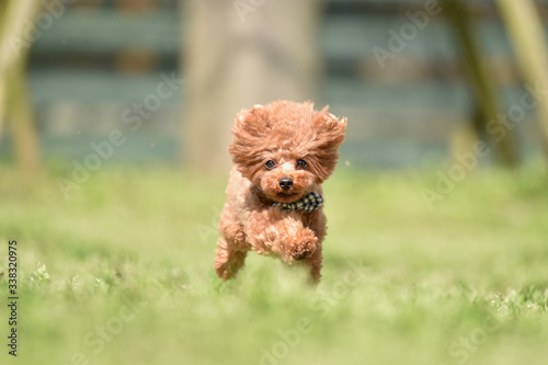 ドッグランで走るトイプードル