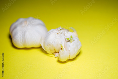 garlic, food, vegetable, isolated, white, ingredient, healthy, spice, bulb, fresh, organic, clove, dish, herb, seasoning, alimentation, raw, favor, vegetarian, epicure, freshness, cook, sensual, up, object, garlic, germination, bud, grow, light, closeup, healthy, yellow, white, energy, lovely, blank space, concept, abstraction, condiment