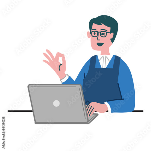 vector, personal computer, notebook, problem, man, man, father, father, family, like, people, business, expression, employee, telecommuting, money, cash, cyberspace, work, home, sideline, nest egg, saving, economic, middle-aged, japanese, waist up, person, gesture, feeling, pose, illustration, alone, ok, material