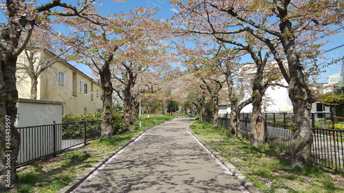 桜の花びらが舞い散った桜並木道