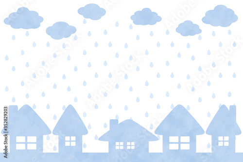house, rain, watercolor, home, architecture, property, illustration, construction, residential, window, business, building, landscape, construction, facility, open air, town, residential area, residential area, town, residence, home, background, frame, frame, rectangle, blue, sky blue, rainy season, rainy season, raindrop, cloud