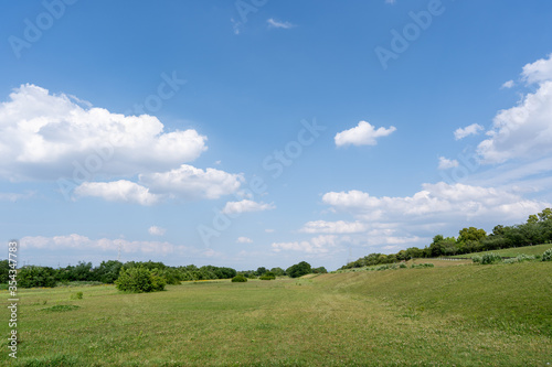 sky, grass, landscape, field, green, meadow, nature, blue, summer, cloud, rural, horizon, spring, agriculture, hill, farm, wood, countryside, global, outdoors, grass, country, forest, white, meadow, plant, summer getaway, travel, vacation