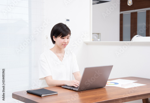 telecommuting, woman, smile, personal computer, people, lifestyle, freelance, house, notebook, japanese, working girl, information, business, copy space, happy, young, indoor