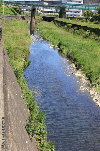 stream, stream, water, shore, grass, weed, leaf, nature, life, biology, plant, rock, green, brown, grey, gradation, landscape, view, background, wallpaper