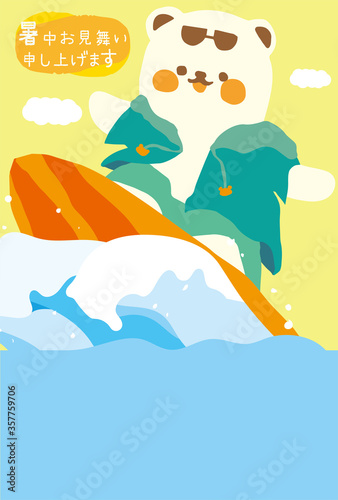 暑中見舞いシロクマサーフィン