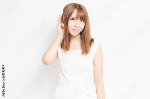 woman, ear, hear, tapping, conversation, hear, secret, waist up, listen, communication, scoop, pose, collection, gossip, model, woman, gesture, copy space, girl, secret, hear, white background, arm, asian, people, woman, japanese, consultation, material, background, young, sweet, image