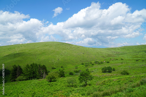 plateau, nature, refreshing, view, green, meadow, mountain, summer, leisure, hike, outdoors, plant, tourist attraction, tour tourism, travel, sunny, blue skies, landscape, showplace, japan, eco