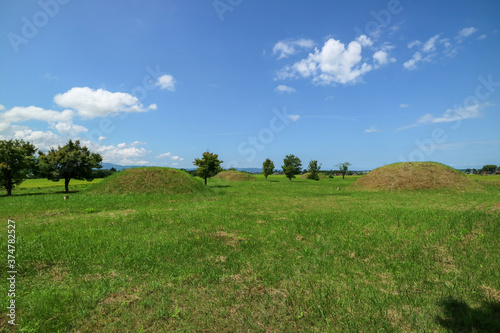 field, sky, grass, nature, green, blue, japan, cloud, hill, wood, countryside, history, country, horizon, view, lovely