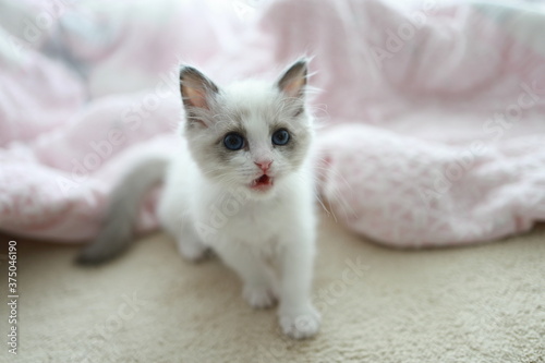 푸른눈을 가진 귀여운 랙돌 새끼 고양이