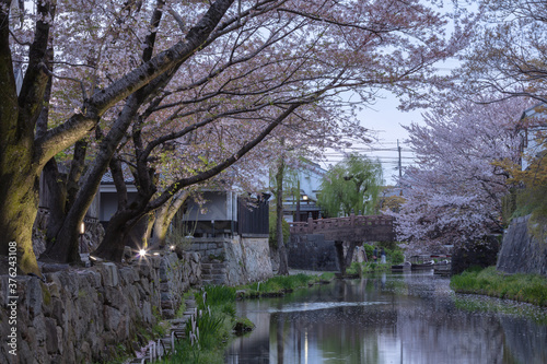 cherry blossom, japan, nature, landscape, spring, pink, history, historic, architecture, construction, stream, water, waterfront, boat, boat, full bloom, four seasons, landmark, sum, unmanned, lovely, tour tourism, tourist attraction, showplace, date, stone wall, branch, celebrate, clean, daytime, light, house, roof tile, roof