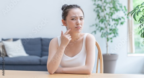 beauty, skincare, cosmetic, woman, young, bare skin, make-up, este, health care, skin, waist up, health, japanese, 30s, portrait, copy space, indoor, indoor, light, positive, smile, smile, smile, hand, cheek, people, beauty, make-up, lifestyle, relax, toilet water, contact lens