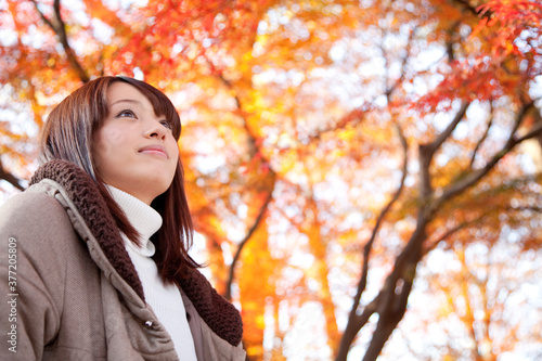 紅葉と女性