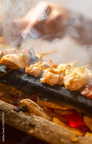yakitori, pub, drink, shop, food and drink, eatery, japan, tokyo, epicurean, poultry, bake, cooking, image, skewer, man, craftsman, japanese, up, closeup, delicious, tasty, food, liftoff, meal, night, dinner, bird, chicken, smoke, kitchen