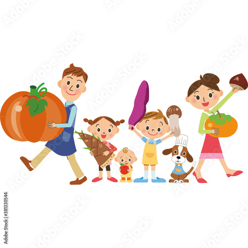 fall, foodstuff, family, pumpkin, dish, illustration, vector, sweet potato, oyster, dog, pet, baby, chestnut, food, mushroom, woman, children, chestnut, nut, fresh, background, chum, cartoon, children, happy, boy, people, family, fun