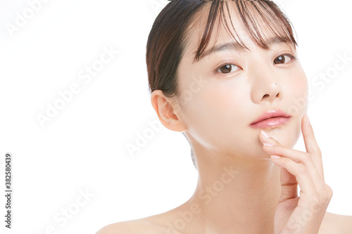 person, portrait, model, japanese, korean, asian, asian, woman, young, missy, 30s, beauty, beauty, cosmetic, make-up, cosmetic, skincare, make-up, make-up, este, health spa, diet, skin, epilation, facial, natural, beauty, lovely, clean, white, healthy, up, sweet, pretty, glamour, face, expression, care, white background, copy space, smile