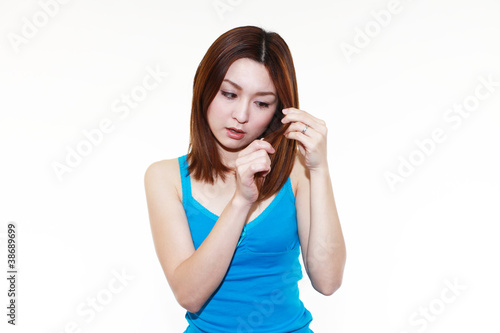 髪の毛を気にする女性