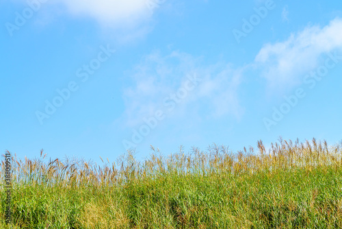 miscanthus sinensis, hill, blue skies, firmament, eco, ecology, sky, cloud, sunny, nature, nature, refreshing, atmosphere, landscape, daytime, daytime, daytime, blue, blue, background, background, copy space, sun, sunlight, summer, morning, weather, light, calm, pretty, light, great, clean, panorama, journey, travel, image, material, wallpaper
