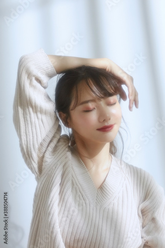 smile, people, portrait, 30s, model, woman, young, missy, japanese, korean, asian, indoor, light, cosmetic, beauty, beauty, skincare, make-up, make-up, make-up, cosmetic, este, skin, facial, fashion, sweater, knit, lovely, beauty, beauty, sweet, relax, expression, shadow, light