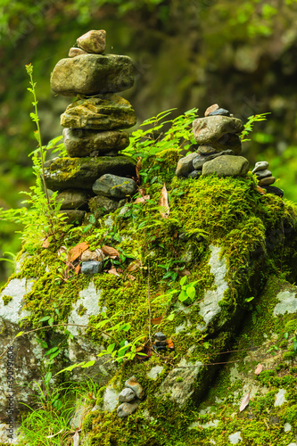 日本 宮崎県の高千穂、天安河原の積み石