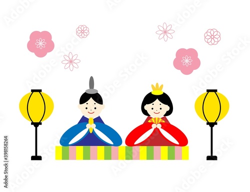 ひな人形とぼんぼりと桃の花のベクターイラスト