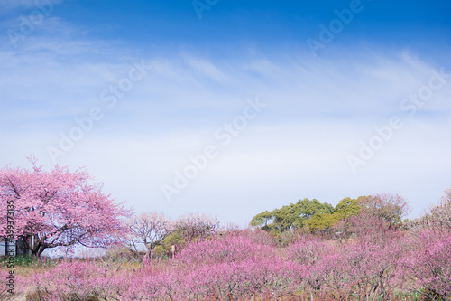 flower, spring, plant, early spring, nature, wood, branch, full bloom, white, sum, landscape, winter, hanami, open air, copy space, tourist attraction, tour tourism, kyushu, japan, park, light, february, sunny, sky, blue skies, blue, sky blue, pink, pink, asia