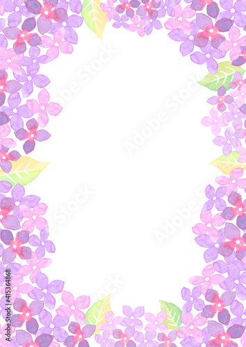 水彩で描いた紫陽花のイラストフレーム
