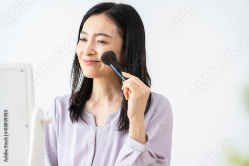 cosmetic, beauty, smile, woman, middle-aged, make-up, make-up, teak, people, celebrity, madam, japanese, elegant, clean, pretty, lifestyle, mirror, cosmetic, make-up, self, blusher, skin, cheek, casual, natural, relax, beauty, elegant, asian, morning, preparation, attendance, depart, ol, career woman, homemaker, 50's, white background