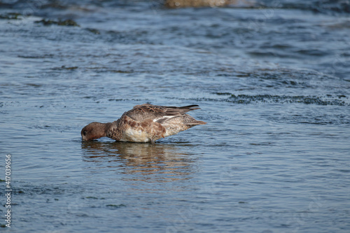 海岸で食事するカモ