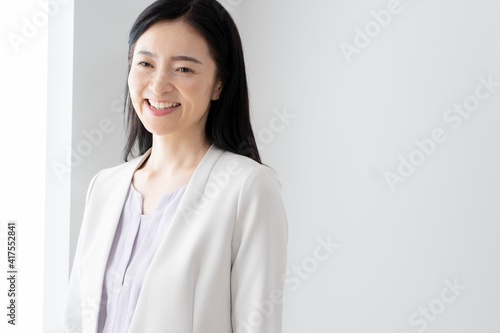 suit, people, woman, soho, corporation, employee, 50's, pressed for time, freelance, manager, manager, executive, career woman, president, front, japanese, copy space, white, smile, business, elegant, indoor, work, work, aged, middle-aged, office, waist up, portrait, ol, senior