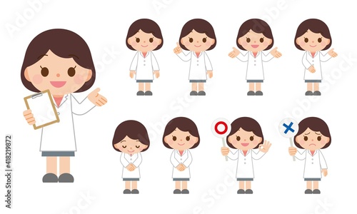 doctor, apothecary, dietitian, researcher, physical therapist, dentist, medical care, study, hospital, care, care, rehabilitation, nursing home, hospitalise, labcoat, employee, staff, binder, expression, bow, bow, cross, ok, ng, information, inducement, pose, character, woman, woman, people, vector