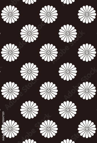 vintage, tradition, japan, pattern, plant, chrysanthemum, flower, circle, design, wallpaper, decoration, decorative, palace, peer, graphic, retro, antique, textile, device, black-and-white, monochrome