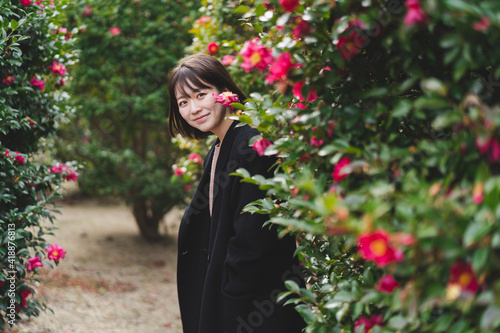 woman, flower, lovely, young, beauty, garden, portrait, nature, summer, spring, rose, happy, face, people, red, green, smile, person, park, hair, wood, fashion, smiling, happiness
