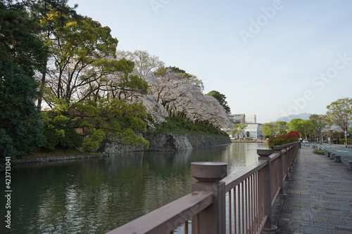 cherry blossom, sakura, castle, shizuoka, trench, stone wall, water, lake, stream, nature, landscape, sky, bridge, blue, wood, forest, summer, cloud, park, sea, travel, green, panorama, view, wooden, path, city, island
