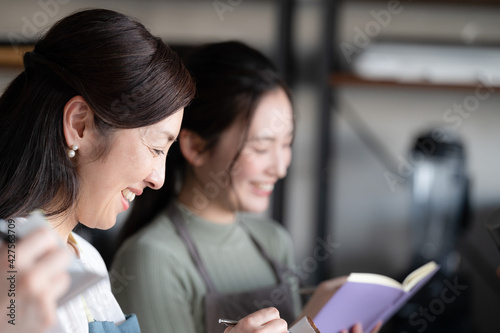 料理教室でメモをしながら聞く女性