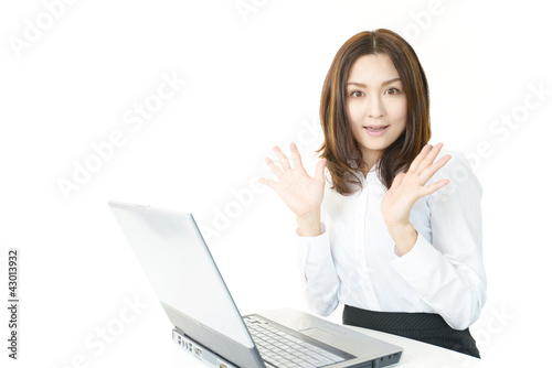 surprised, flop, personal computer, notebook, keyboard, communication, health, cosmetic, woman, beauty, model, sweet, pretty, young, people, lovely, japanese, black hair, office, business, ol, career woman, light, woman, girl, happy, happiness, healthful, clean, beauty, expression, clean, dispatch, white background, copy space, pose, work, corporation, corporate, staff, office worker, employee