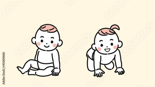 赤ちゃん 男の子と女の子 お座り ハイハイ 双子 イラスト素材