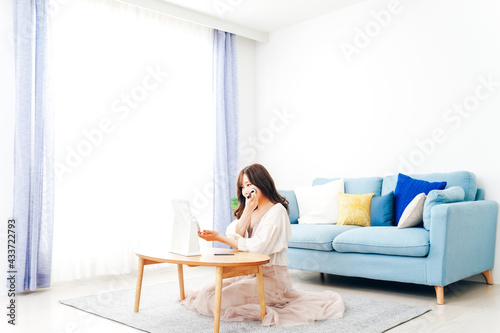 home, make-up, make-up, morning, trip, preparation, cosmetic, make-up, cosmetic, privies, foundation, brush, mirror, teak, young, lovely, look, room, indoor, skin, skincare, beauty, woman, relax, fun, enjoy, happy, relax, set, smile, smile, long hair, asian, japanese, chinese, korean, white background, copy space