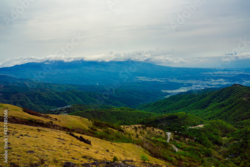 spring, landscape, peak, midland, japan, asia, nature, nature, tour tourism, tourist attraction, showplace, earth, journey, travel, leisure, outdoors, trek, hike, mountaineering, climb, highland, mountain, sky, firmament, cloud, overcast, green, meadow, plateau, mountain, summer, panorama, forest, grass, view