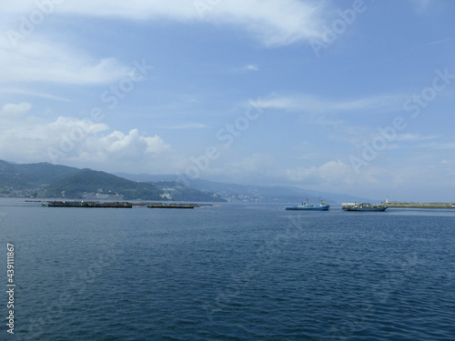 port, sea, summer, japan, shizuoka, rainy season, afternoon, sunny, blue, sky blue, blue skies, cloud, water surface, boat, boat, fishing, lighthouse, condo, hotel, mountain, nature, landscape, view, open air, tour tourism, travel, journey, showplace, sky, beach