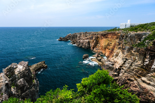 wakayama prefecture, rock, nature, view, landscape, tour tourism, tourist attraction, showplace, travel, japan, asia, sea, beach, sunny, blue skies, horizon, cliff
